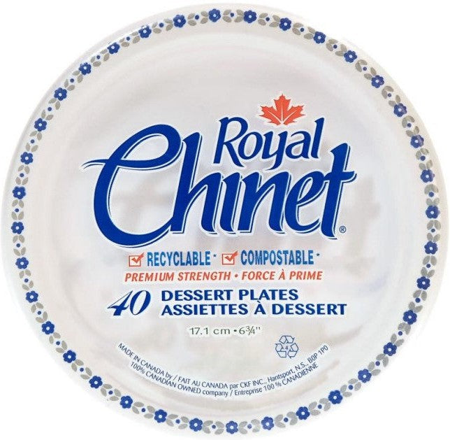 CKF Inc.'s Retail 40/pk Sleeves 6.75" Chinet Dessert Paper Plates, available in convenient packs of 12/cs. Elevate your dining experience with these premium single-use tableware plates crafted from eco-friendly paper material. Key features include: