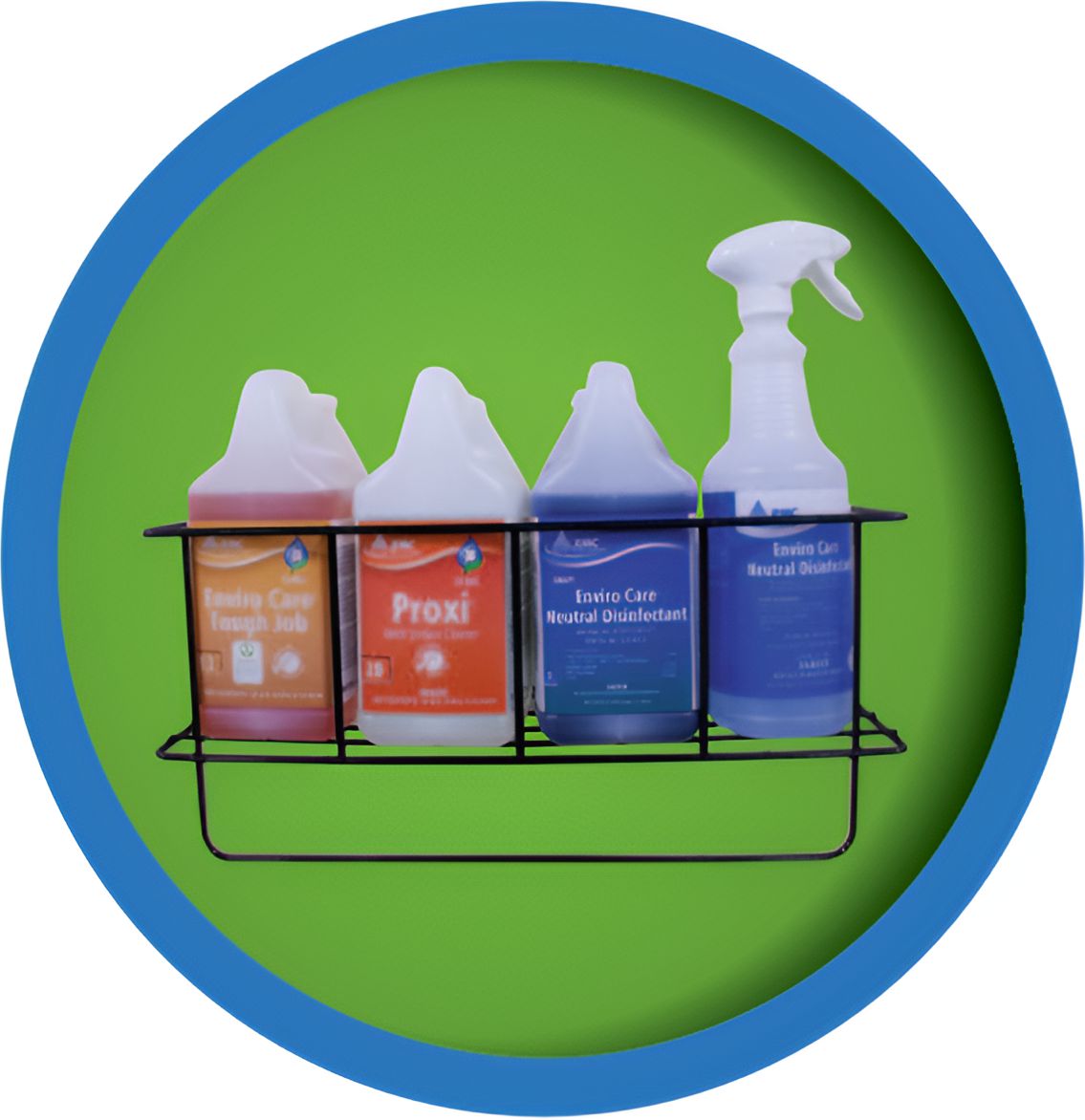 The Rochester Midland EZ-MIX Wall Rack is a sturdy and efficient solution for organizing and accessing your cleaning products. Designed to hold up to 4 EZ-MIX 1/2 gallon bottles or ready-to-use spray bottles, this metal wall rack combines practicality with durability.