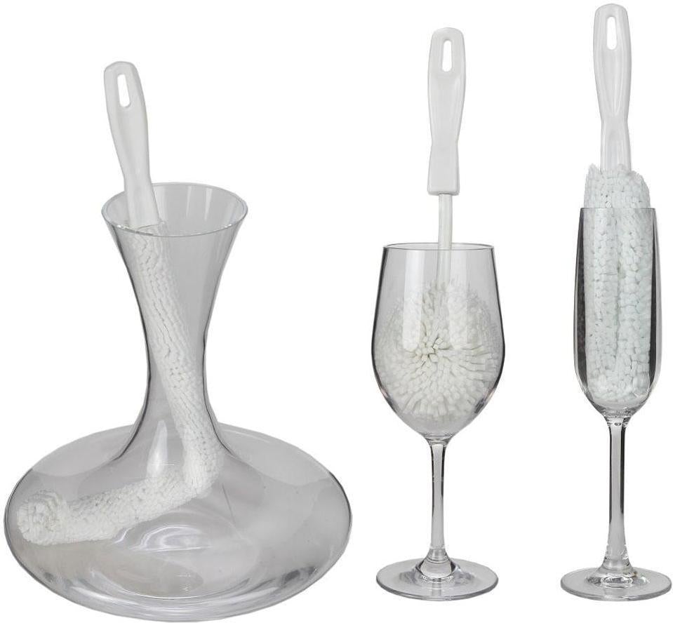 Champange Flute Brush will not scratch, chip or harm your valuable crystal flutes. The soft yet high tensile brush is durable and does not absorb any water and become limp or soggy. While your delicate glassware may not be dishwasher safe, this brush is.