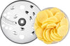 - Dual Discs for Precision: Equipped with two round discs, one for fine cutting and grating, and the other for coarse cutting and grating. Each disc features dual sides, allowing you to effortlessly handle various ingredients, from potatoes and cucumbers to cheese.