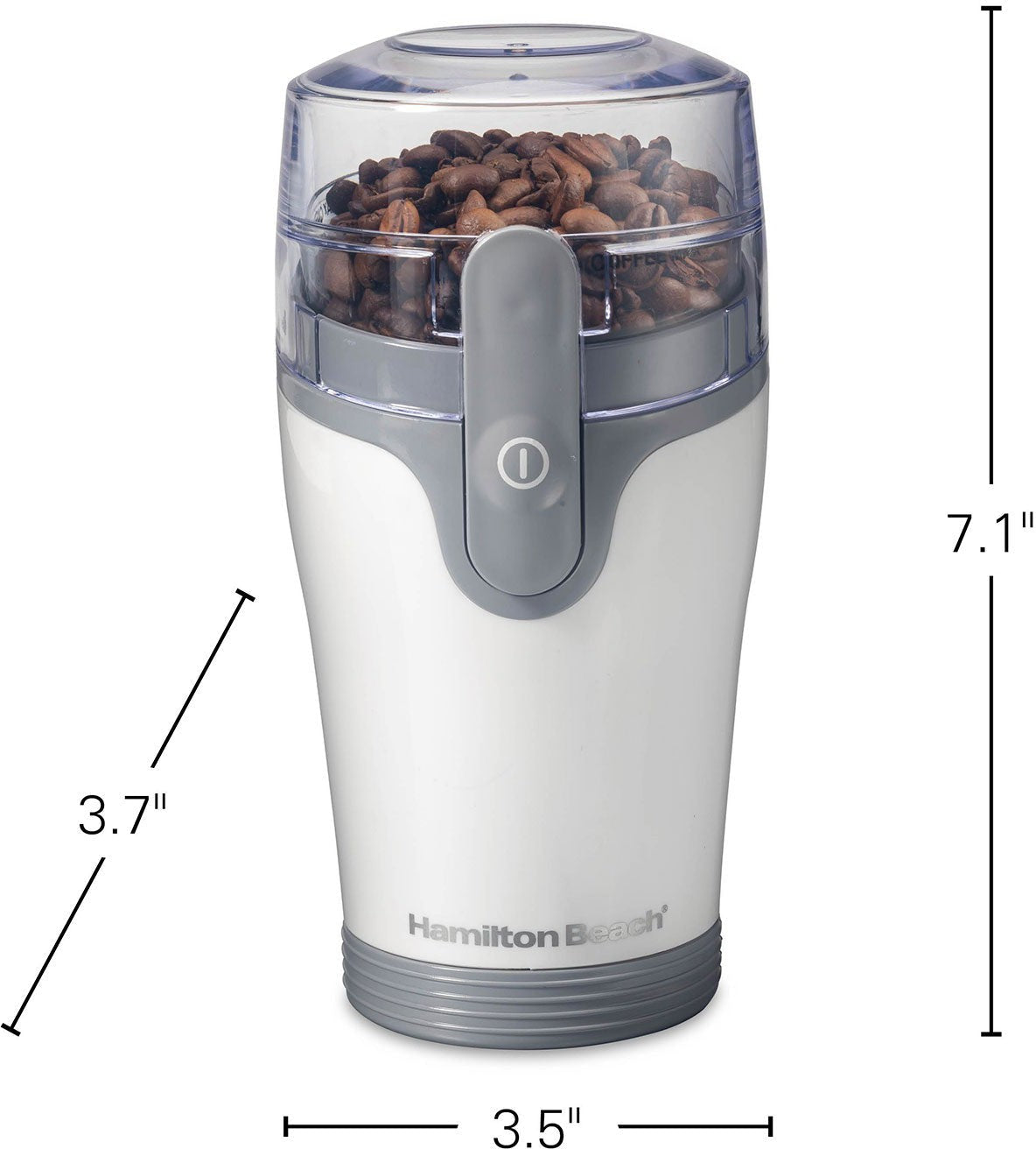 Enjoy the rich flavor of freshly ground coffee every morning with the Hamilton Beach Fresh Grind Coffee and Spice Grinder. This compact and efficient grinder is designed for easy use and effortless cleanup, making it an essential kitchen tool for coffee lovers and home chefs alike. The Hamilton Beach Fresh Grind Coffee and Spice Grinder makes it simple to enjoy the freshest coffee every morning. The removable stainless steel grinding bowl and lid are dishwasher safe, ensuring effortless cleanup after each use. The grinder's durable stainless steel blades quickly and efficiently grind coffee beans to your preferred consistency, whether you're brewing a quick cup or a full pot for guests. Not only is this grinder perfect for coffee, but it's also great for grinding a variety of herbs and spices. From peppercorns and fennel to sesame, flax, and chia seeds, you can easily prepare fresh ingredients for your favorite recipes, smoothies, and protein shakes. Using the grinder is straightforward and intuitive. Just place the lid on the grinder, press the button to start grinding, and release to stop. The hidden cord storage keeps your kitchen countertop organized and clutter-free when the grinder is not in use. With its compact design and versatile functionality, the Hamilton Beach Fresh Grind Coffee and Spice Grinder is a valuable addition to any kitchen.