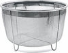 Perfect steamer basket for veggies, hard cooked eggs, you can also use it for fast straining when you are making bone broth & stocks. The basket is perfect for anything from cooking broccoli to steaming clams. The colander/steaming basket features a comfort grip silicone handle. Simply insert this steamer into a 24 cm / 9.5 inch or larger pot and the boiling water in the receiving pot provides hot steam to the steamer above. Use the receiving pot's cover on the steamer above to seal in maximum heat. Rust-resistant stainless steel construction stands up to the rigours of everyday use. The basket has a raised, footed base.
