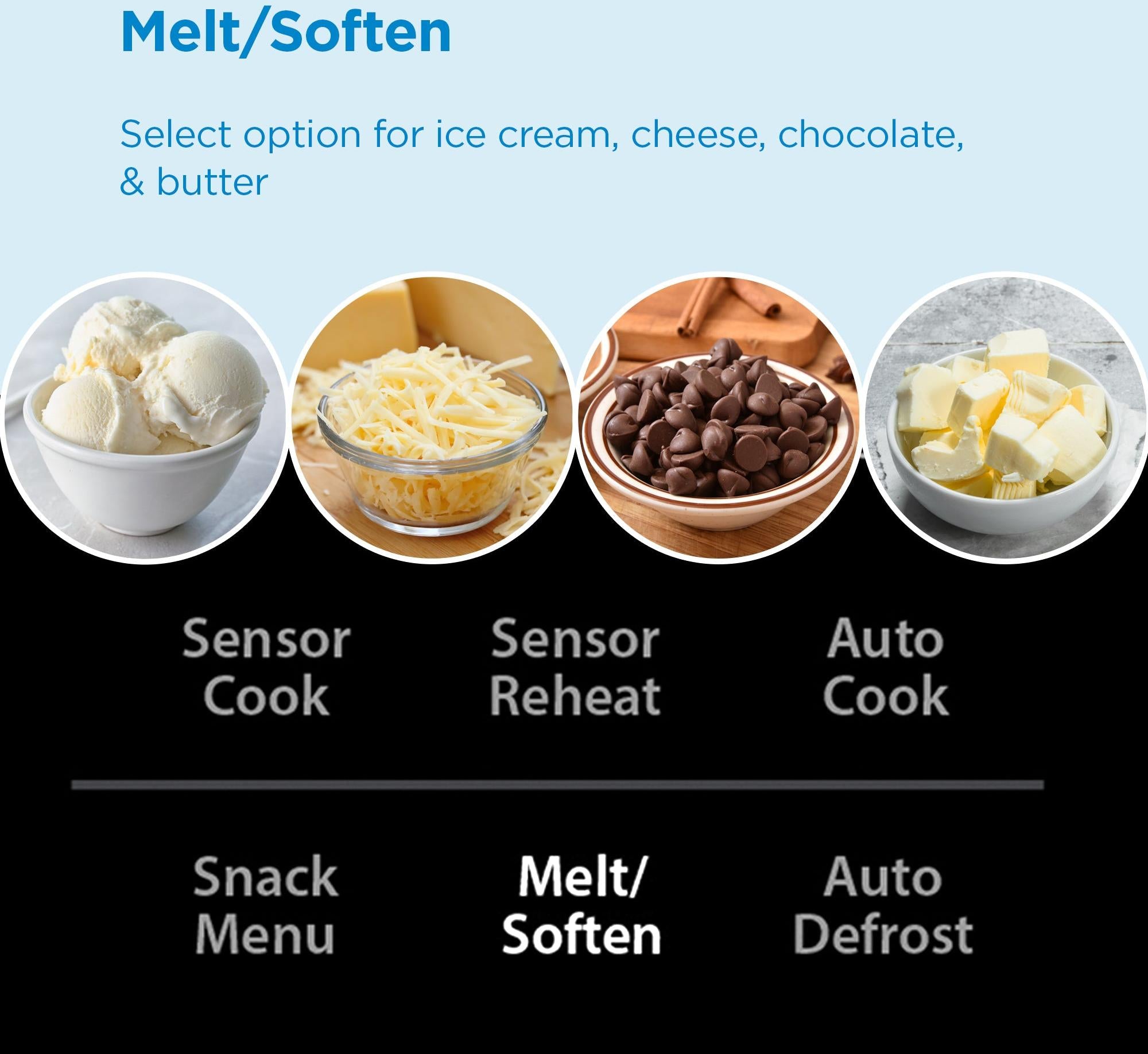 - Soften/Melt function for butter, chocolate, cheese, and ice cream