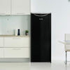 Add retro flair and modern efficiency to your home with the Danby 11.0 cu. ft. Contemporary Classic Apartment Size Black Fridge. This all-fridge unit features a striking black metallic finish with chrome accents, a curved retro-style door, and Danby’s signature all-black interior. Perfect for condos, apartments, and townhouses, it offers a spacious 11.0 cu. ft. (311 L) capacity, complete with three adjustable chrome-trimmed glass shelves, five integrated door shelves, and a clear crisper drawer with a glass cover. ENERGY STAR® certified, it delivers performance while helping reduce energy bills. A bright white LED light enhances visibility, and a reversible door hinge provides flexible installation. With automatic defrost and a mechanical thermostat, this fridge combines timeless style with everyday convenience.