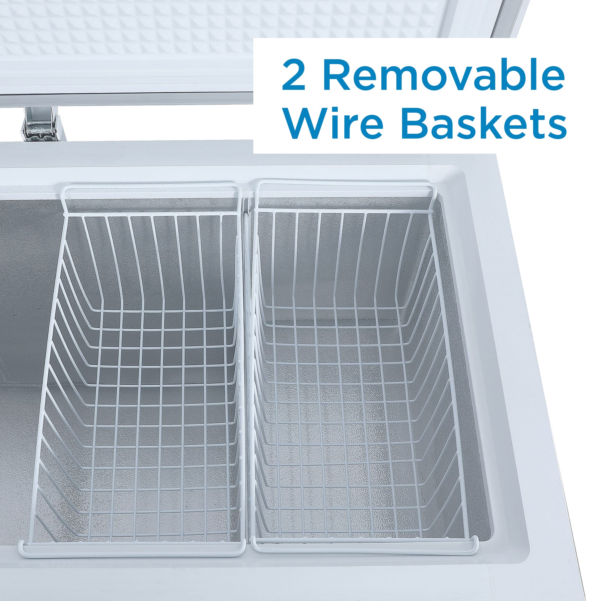 • Two Removable Wire Storage Baskets: Organize frequently used items for quick access