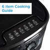 - Includes a 6-item cooking guide for common foods like chicken and fish