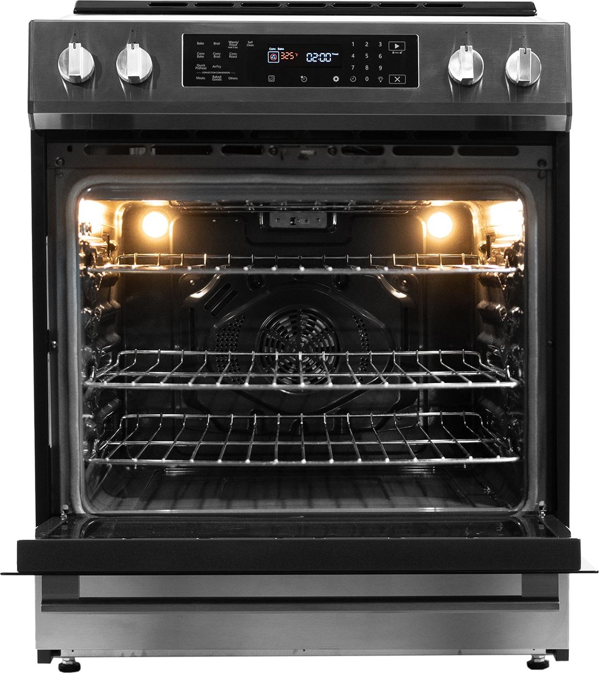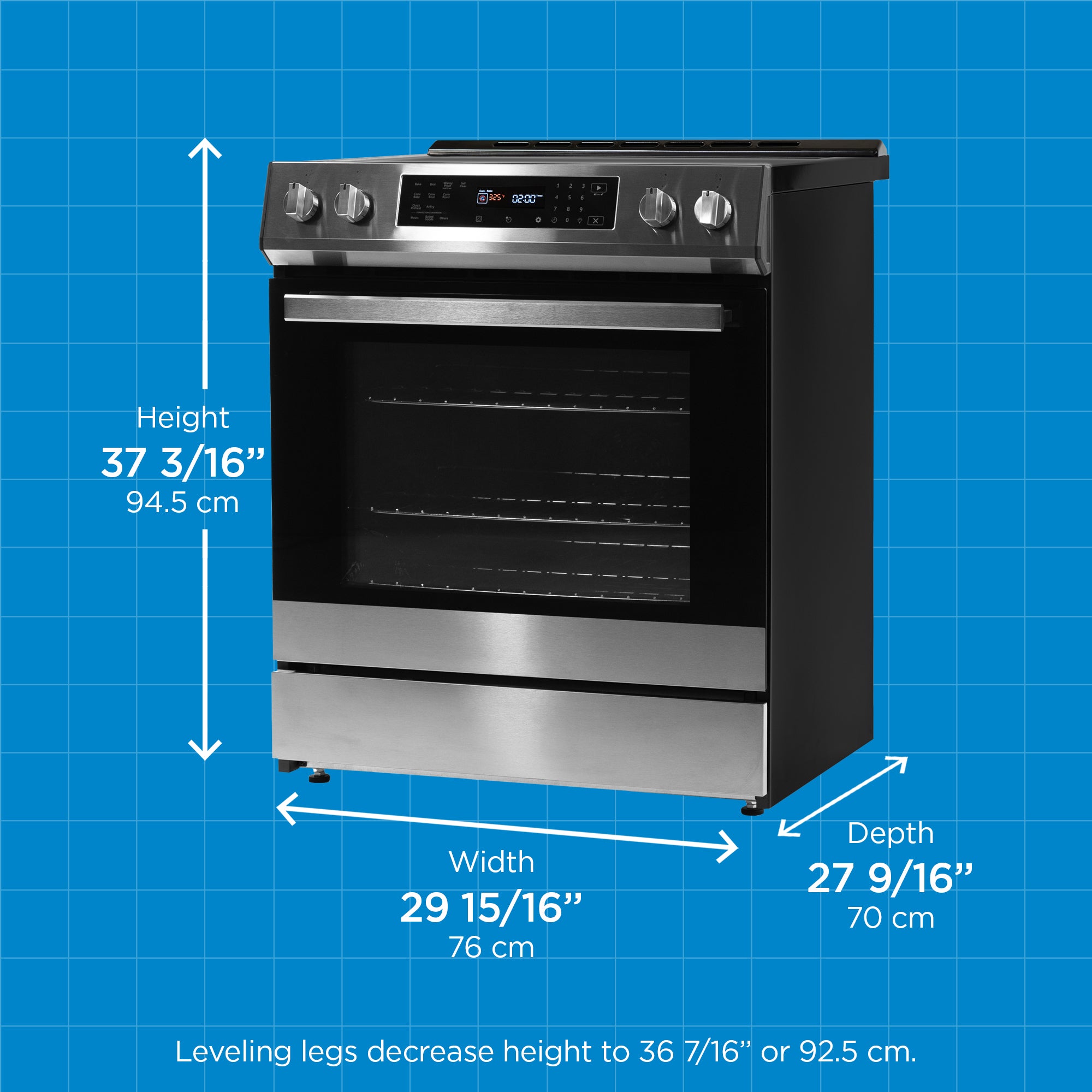 - 30-Inch Slide-In Design: Fits seamlessly into modern kitchens with a stainless-steel finish