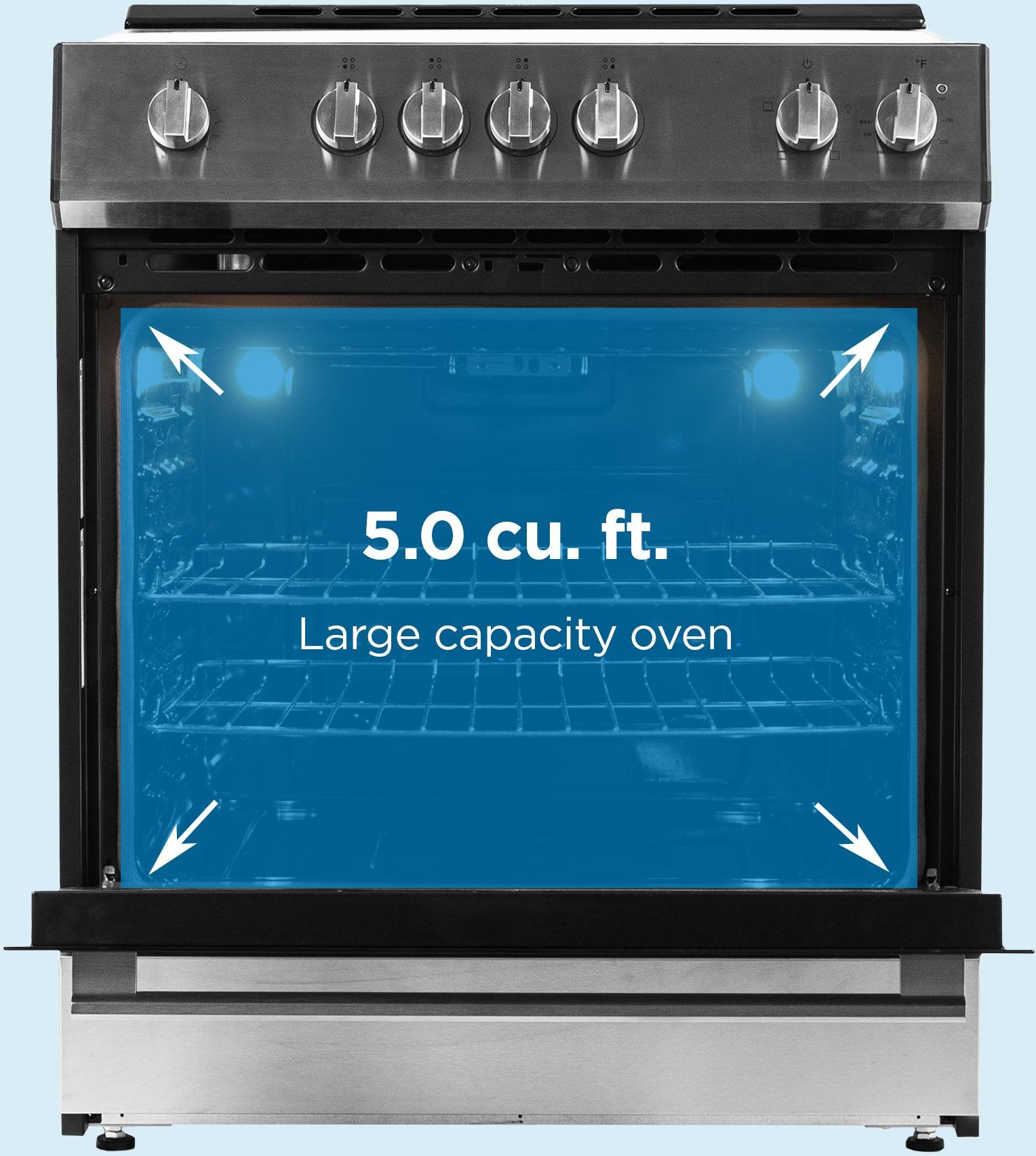 • Spacious 5.0 cu. ft. Oven: Large capacity to accommodate big meals or multiple dishes