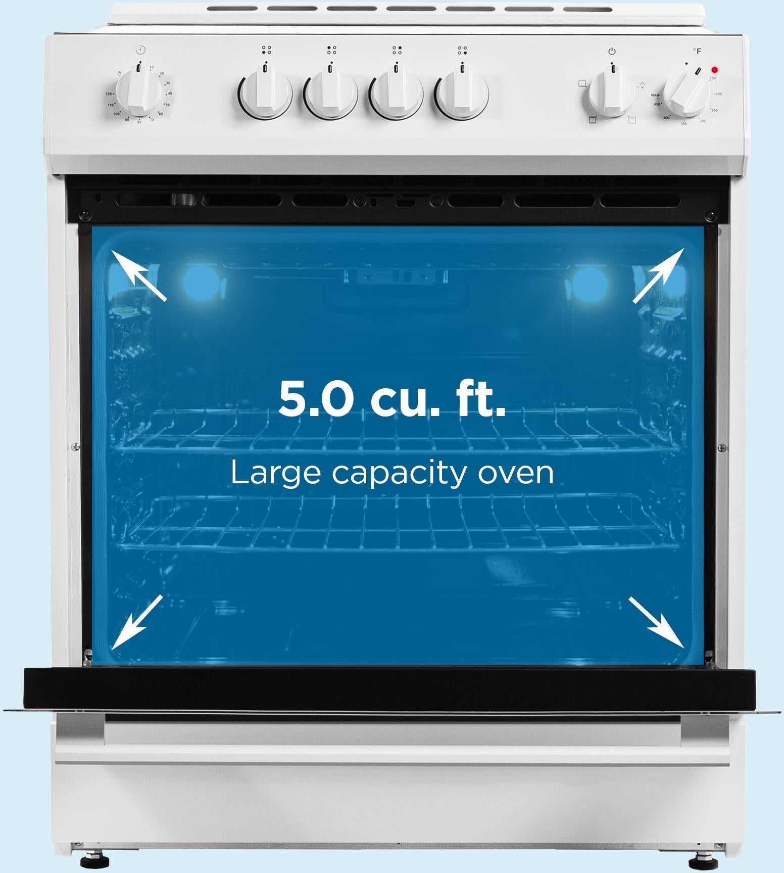 - Spacious 5.0 cu. ft. Oven: Large capacity to accommodate big meals or multiple dishes