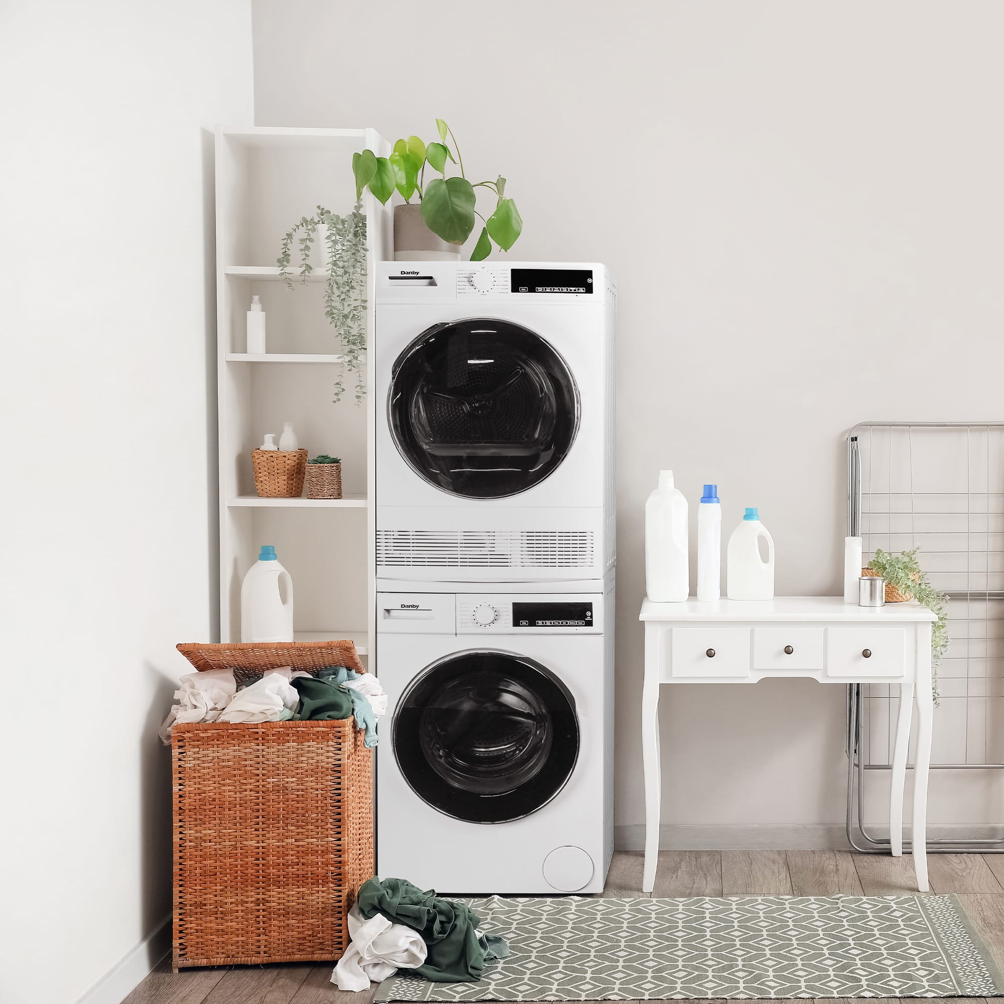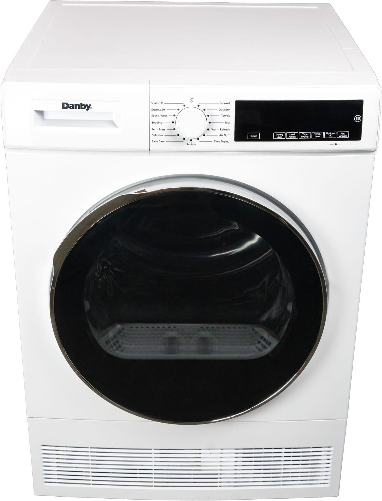 Experience powerful and efficient drying with the Danby 4 cu. ft. Stackable Front Load Dryer. This ventless condenser dryer is perfect for small spaces, offering flexible installation without the need for external ducting. With 15 drying cycles and 3 temperature settings, you can customize each load for optimal care. The two-way tumble motion ensures even drying, while the Even FLOW and built-in humidity sensor prevent over-drying and protect your fabrics. Features like the extra-large lint trap, reversible door, and child lock add convenience and safety. ENERGY STAR® certified, this dryer helps reduce energy consumption without compromising performance. With sleek digital controls and a space-saving stackable design, this dryer is an excellent solution for modern, energy-conscious homes. Backed by a 2-year in-home warranty for added peace of mind.