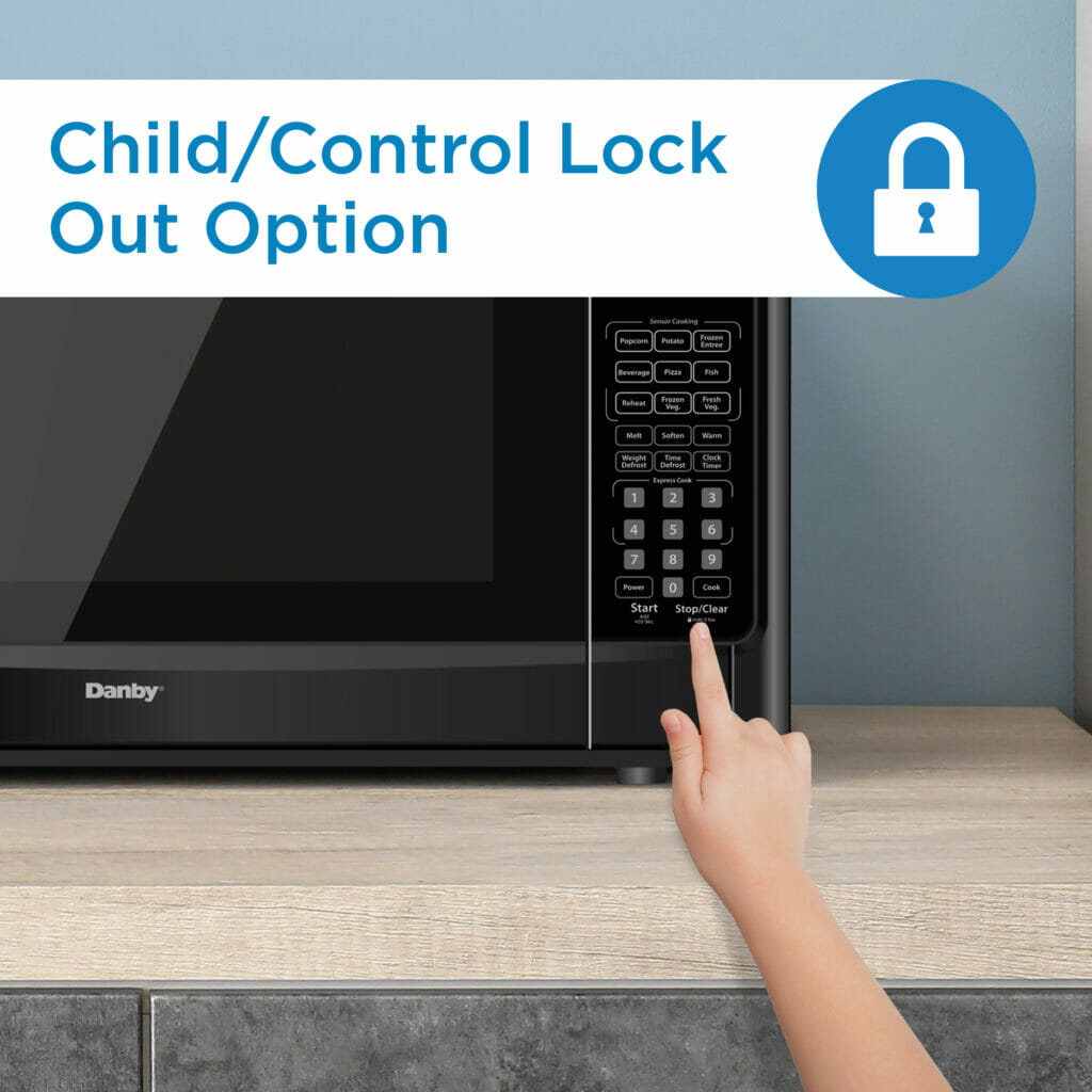 Cook with precision and convenience using the Danby Designer 1.4 cu. ft. Sensor Cooking Microwave in black. With a spacious interior and powerful 1000 watts of cooking strength, this microwave is perfect for busy kitchens, offices, dorm rooms, or cottages. Featuring 9 sensor cooking options that automatically stop when food is perfectly heated, it takes the guesswork out of mealtime. Use one-touch express cook buttons, auto defrost by time or weight, and special melt, soften, and warm functions for flexible cooking. Designed with safety in mind, the child lock function ensures peace of mind, while the integrated handle and glass turntable add sleek functionality to this freestanding unit.