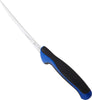 The Mercer Millennia 6" Japanese Steel Curved Boning Knife with Blue Handle, designed to elevate your culinary experience with precision, comfort, and safety in mind. With its color-coded handle, this knife is tailored for dedicated use applications, aiding in better food safety handling practices. Crafted from a single piece of high-carbon Japanese steel, it ensures easy edge maintenance and rapid sharpening, guaranteeing a consistently razor-sharp edge. The raised Santoprene® textured handle offers an enhanced grip and superior comfort, allowing for extended use without fatigue. Textured finger points provide slip resistance, ensuring a secure grip and enhanced safety during intricate cutting tasks. For added protection, this knife features a protective finger guard, ensuring safe handling even during rigorous use. Its ergonomic handle, crafted from a combination of Santoprene® and polypropylene, strikes a perfect balance between comfort and durability, making it a reliable companion in any kitchen setting. Experience the precision and performance of the Mercer Millennia 6" Japanese Steel Curved Boning Knife with Blue Handle, a versatile tool that excels in both professional and home kitchens alike.