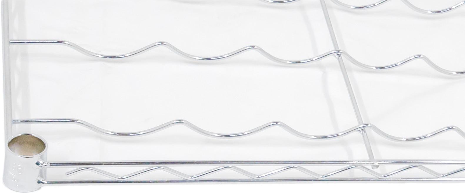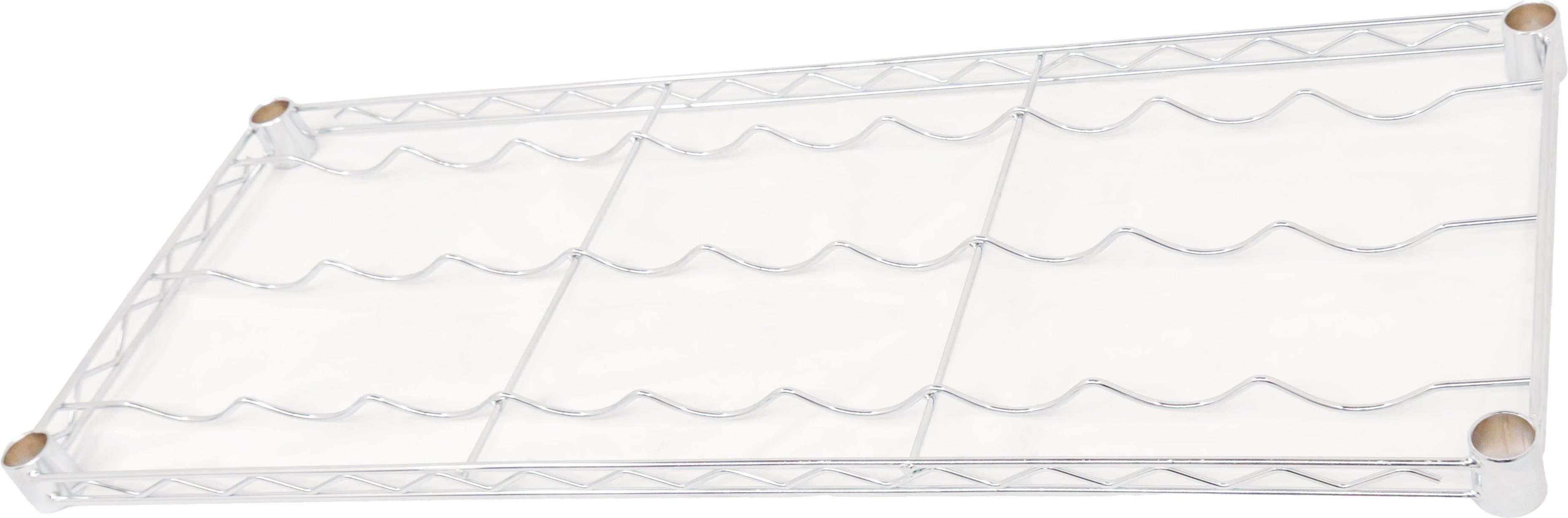 Organize your wine selection with the Omcan 14″ x 36″ Chrome Wire Wine Shelf. Designed to store up to 9 bottles per shelf, this sturdy chrome wire shelving system is ideal for commercial kitchens, wine cellars, or retail displays. With its sleek chrome finish and durable construction, it provides a stylish and practical solution to safely store and showcase wine bottles. This pack includes 6 shelves—perfect for expanding your current setup or creating a full storage system.