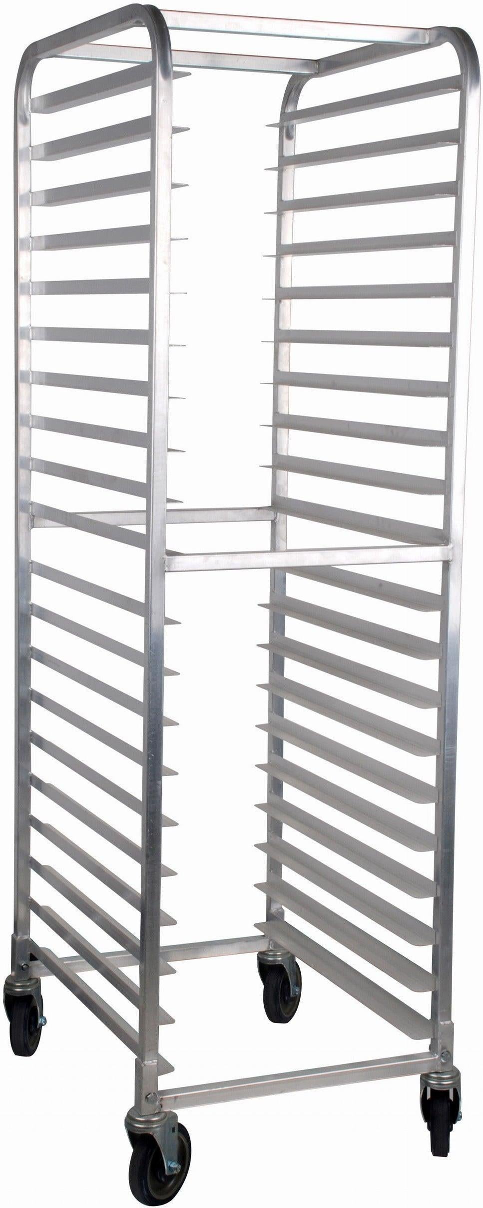 Efficiently organize and transport your steam table pans with the Omcan Aluminum Mobile Pan Rack. Designed with a curved top for added stability and style, this rack holds up to 20 full-size steam table pans with 3" spacing between slides. Built with a durable aluminum frame and equipped with 5" polyurethane swivel casters, it's the perfect solution for fast-paced commercial kitchens that need mobility and strength.