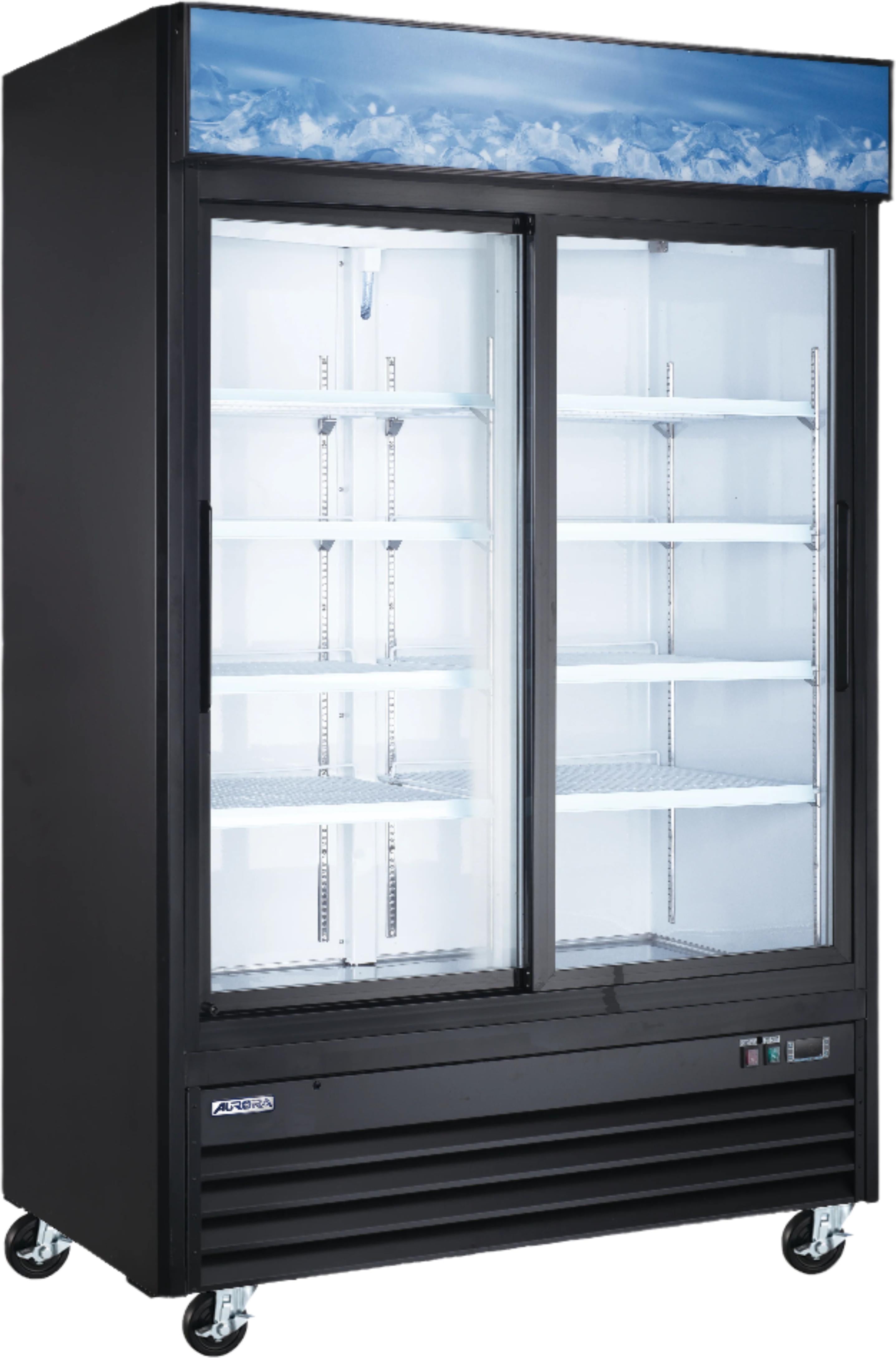 Omcan - Aurora 2 Sliding Glass Doors 54” Black Display Refrigerator - 59132