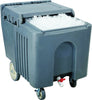 This insulated ice caddy offers the best solution to keep 125 lbs of ice cold thanks to its thick layer of Polyurethane foam insulation. The high quality Polyethylene exterior ensures that the caddy will not dent or rust. The front swivel casters, large rear wheels, and molded-in handles provide superior ergonomics and maneuvering. The drain spout is convenient for releasing water from the caddy.