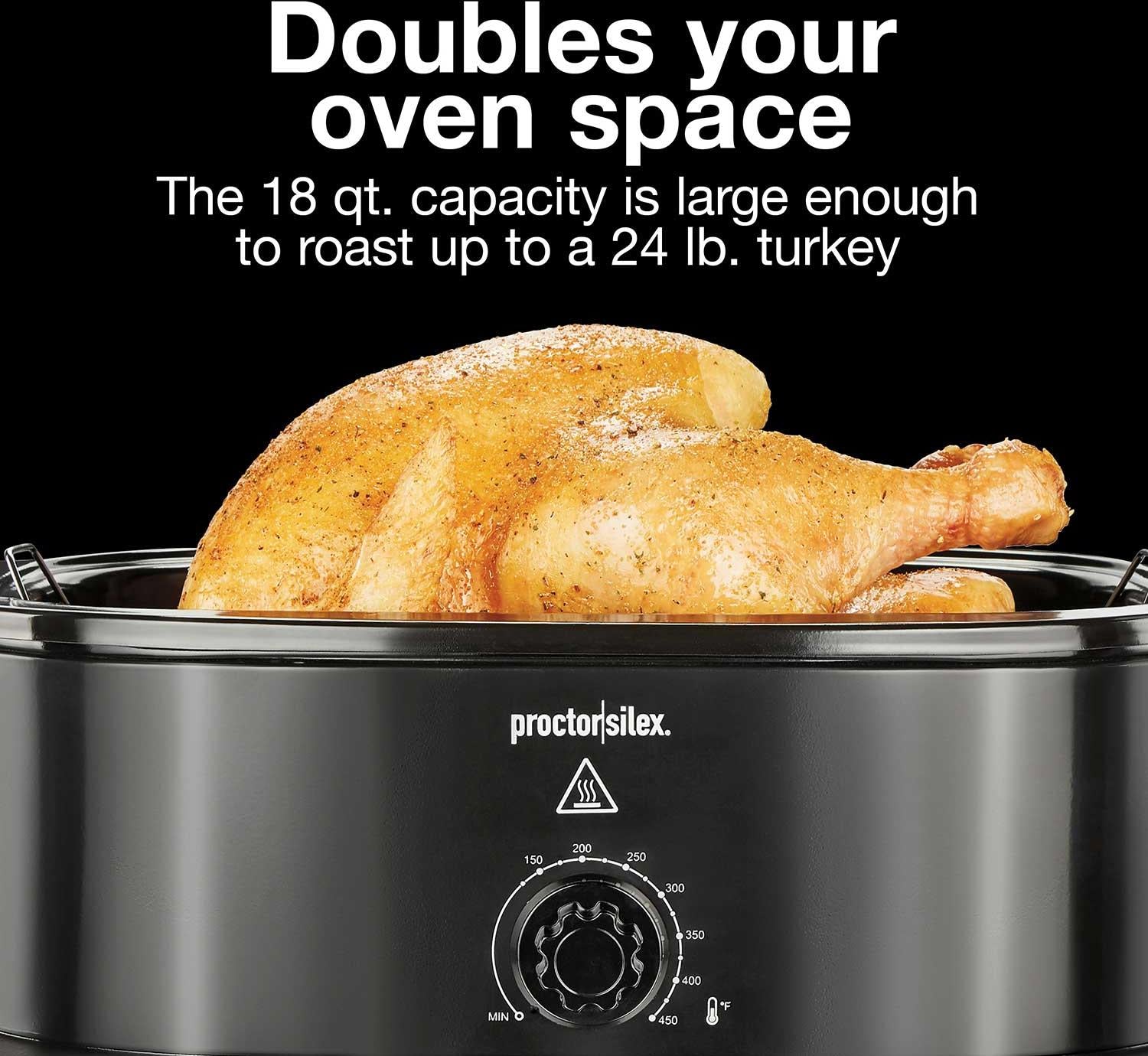 - Large 18-Quart Capacity: Accommodates up to a 24-pound turkey, suitable for large meals and gatherings.