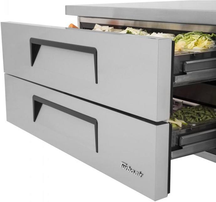 Turbo Air - 53.4" Silver Two Drawer Refrigerated Chef Base with Extended Top - TCBE-48SDR-E-N (ETA 5-6 Weeks)