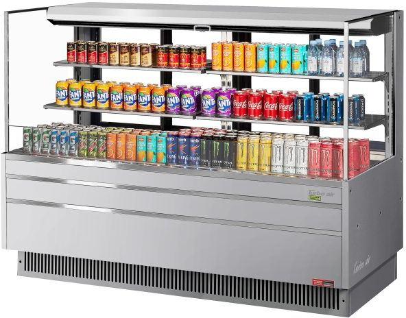 Turbo Air - 70.75" Silver Low Profile Horizontal Open Display Case with 2 Tiers with 4 Glass Shelves + Deck Only - TOM-72L-UFD-S-3S-N (ETA 5-6 Weeks)