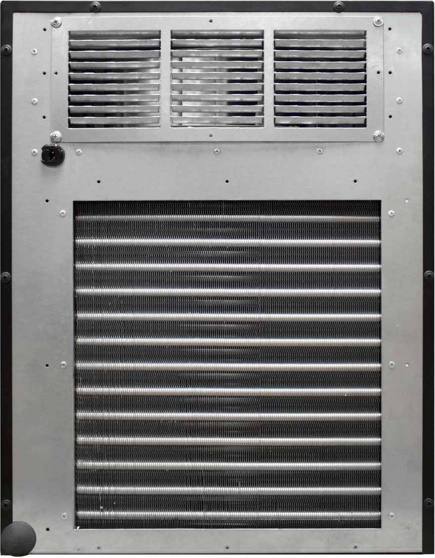 - Adjustable evaporator and condenser fans with speed control knobs.