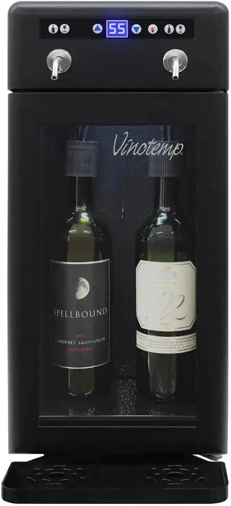Discover the elegance and functionality of the Vinotemp 2 Bottle Wine Dispenser, designed to offer a premium wine experience whether in a restaurant, club, or at home. This sleek dispenser allows you to serve and preserve two open bottles of red or white wine with ease, ensuring each glass is perfectly chilled and expertly poured. With its black finish and modern design, it’s an ideal addition for any wine enthusiast looking to enhance their wine service.