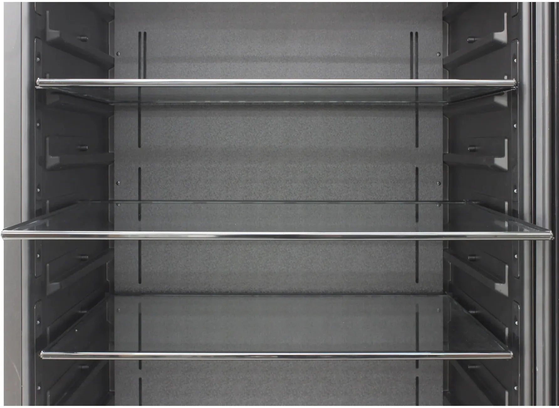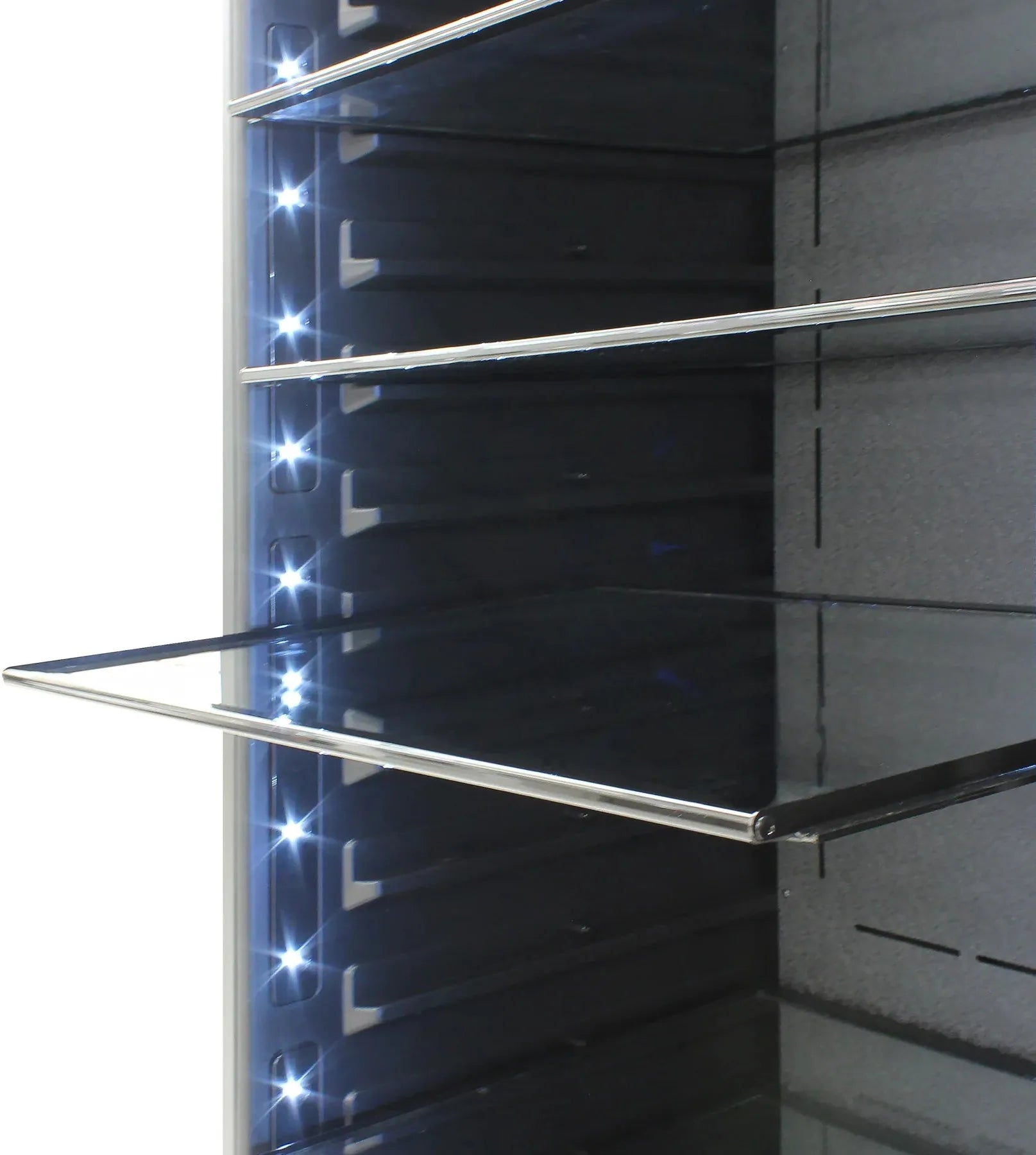 • Adjustable Storage: Equipped with 8 adjustable glass shelves, allowing for customizable storage configurations.