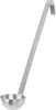 This 2 oz. soup ladle is crafted with durable stainless steel that's strong enough to withstand repeated use in any commercial kitchen. It measures 12'' in length and boasts a capacity of 2 oz. An integrated hooked handle allows for the item to easily sit on the edge of pots, while this item is very easy to clean at the end of a shift. This ladle is the ideal complement to any chef's traditional set of utensils. Great for sauces and gravy.