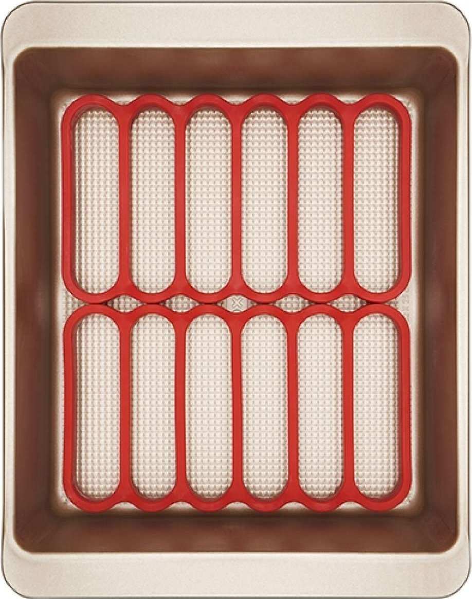 Conveniently elevates food above fat and liquid for healthier cooking. The open design allows air to circulate around food for fast, even roasting and easy cleaning. Use individually in a small pan, side by side in a large pan, or stacked for extra elevation. Dishwasher safe.