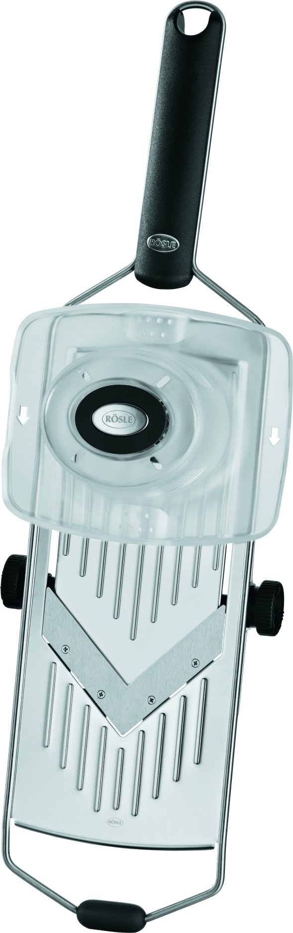 Quickly processes vegetables up to the last bit. The Vegetable Grip fits well in the hand and facilitates safe and quick preparation. Compatible with Julienne Slicer item #95063 and with Rosle V-Slicer item #95095 each sold separately.