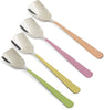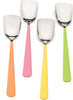 Enjoy every bite of ice cream, sherbet, sorbet or yogurt with our ice cream spoons. The fun coloured handles make serving up dessert even more festive! This set of 4 spoons are made from highly polished stainless steel with coloured enamel handles and a blunt end for ultimate scooping performance. Dishwasher-safe. 6.25″ overall length.