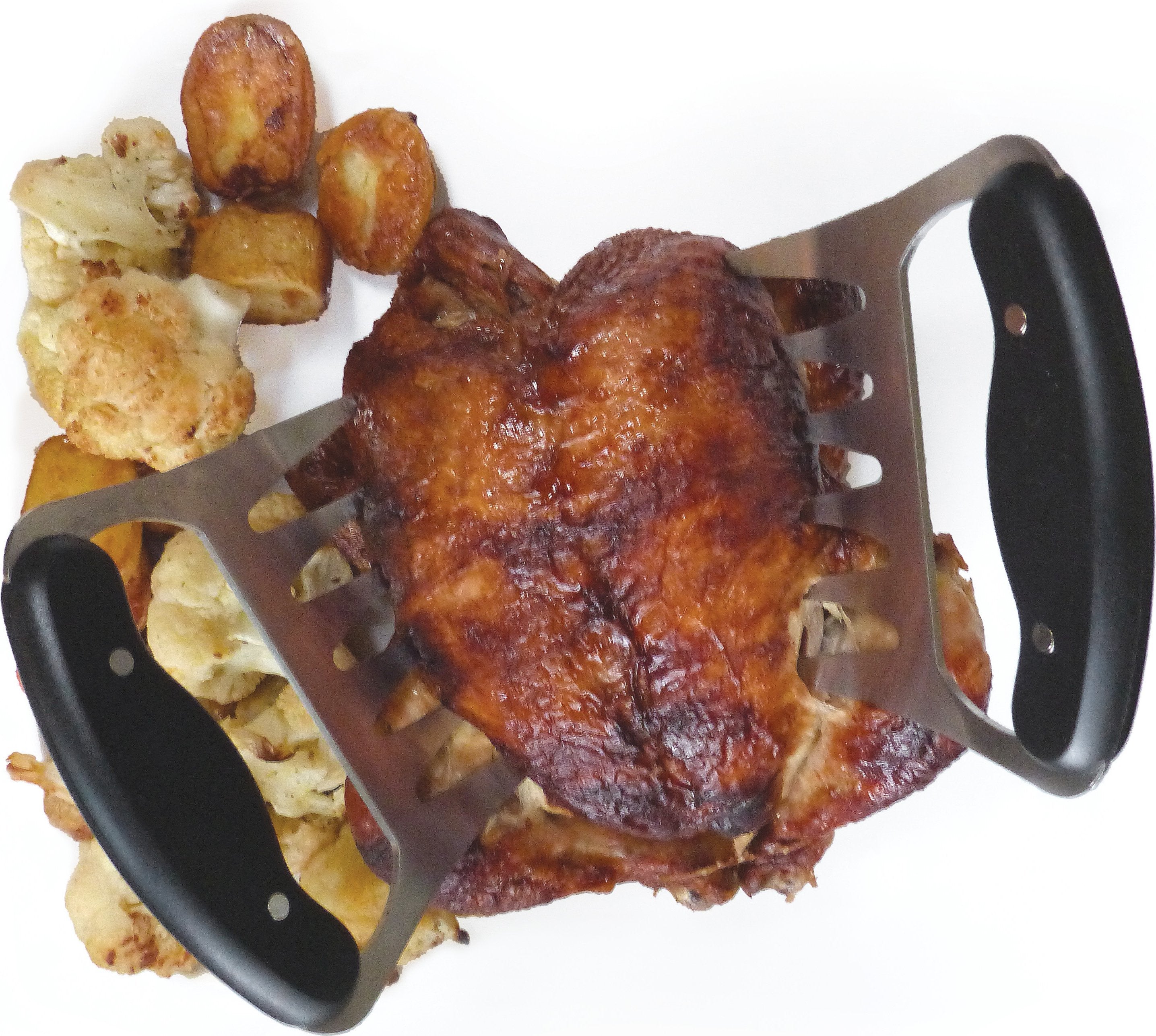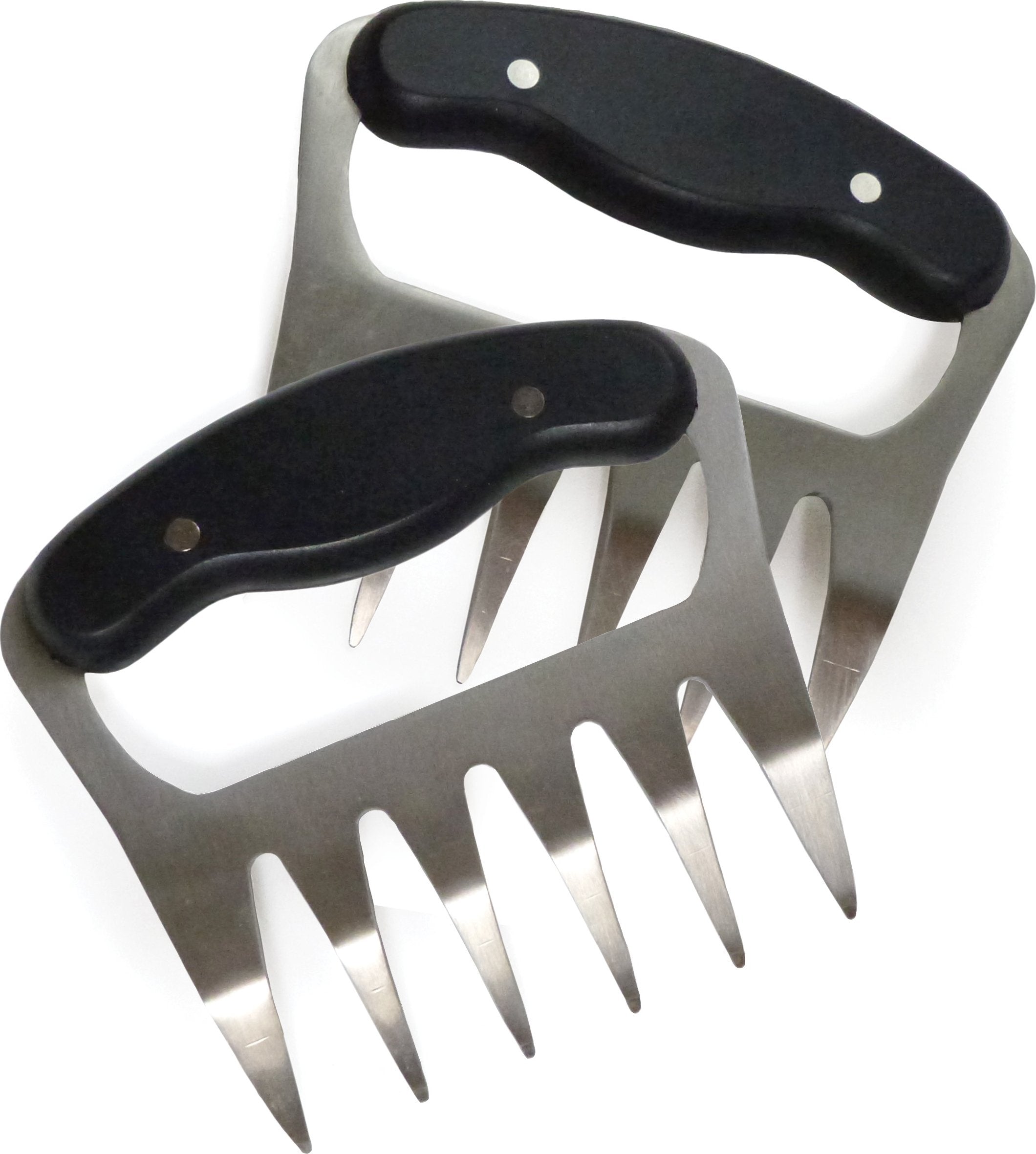 Shredding pork, brisket or chicken is easy with this pair of stainless steel meat claws. The contoured handles accommodate both large and small hands providing comfortable control while handling large cuts of meat. This multi-use tool is perfect for lifting and shredding meat but can also be used for holding food in place while carving or even tossing a salad. Made from dishwasher-safe stainless steel. Overall: 5.25″ x 5″ (2″ long prongs).