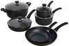 - Set includes: 8-inch fry pan, 11-inch fry pan, 2.9-quart sauté pan w/lid, 2.8-quart saucepan w/lid, 7.3-quart Dutch oven w/lid