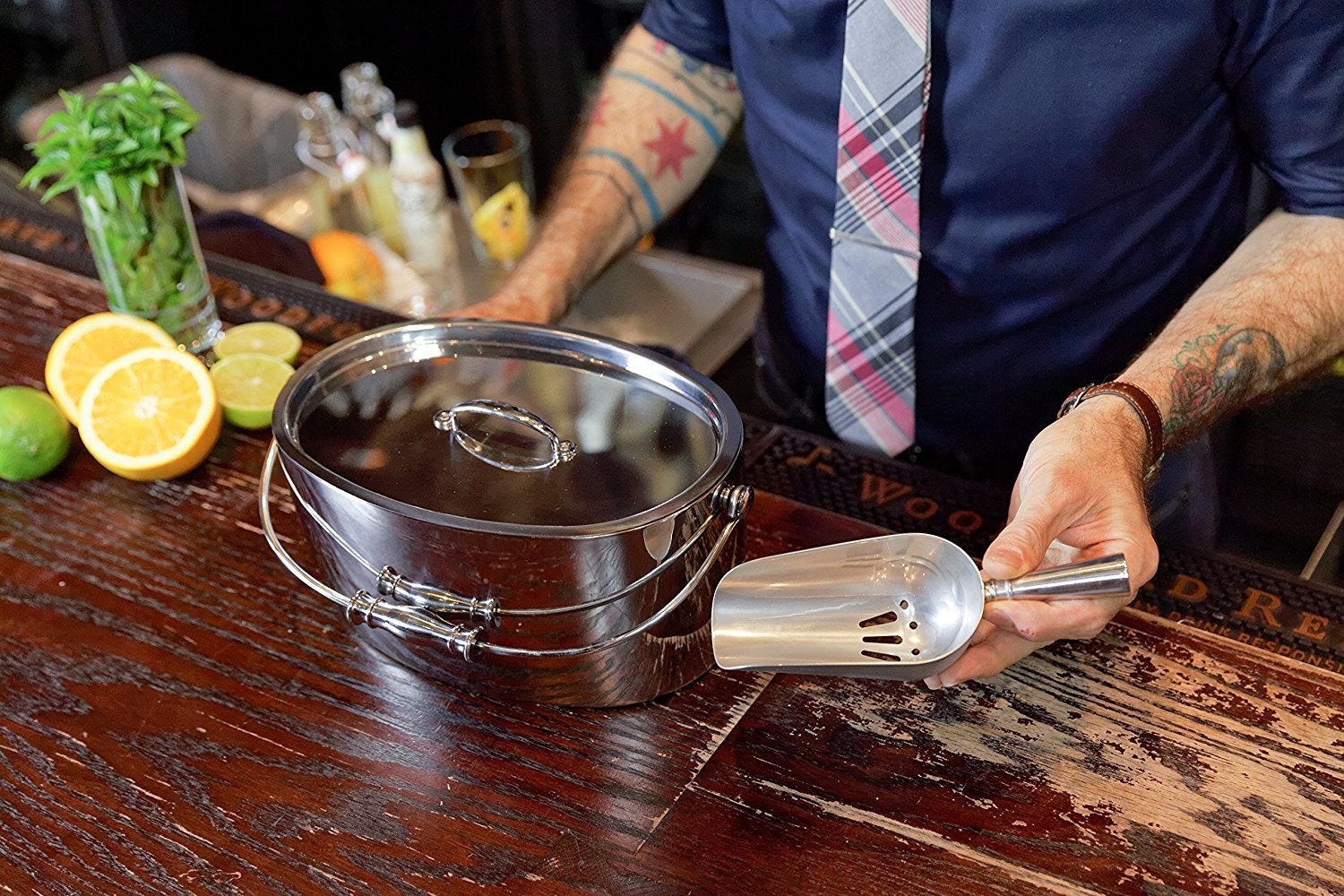 Just the right size to fill your glass, shaker or mixing glass quickly. Drain openings keep the water out of your drink and reduce unwanted dilution. The perfect complement to the ice bucket.