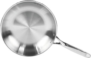With its patented ULTRAPLYlight® technology, this stainless steel frying pan combines strength with lightness. The innovative 5-ply construction, reinforced with an aluminum core, ensures remarkable thermal efficiency, even heat distribution, and the absence of hot spots. The highly responsive cooking surface heats up and cools down rapidly, providing precise control over your culinary creations. Designed for comfort and convenience, the Castel'Pro Frying Pan features an easy-to-grip, stay-cool handle. Crafted from athermic solid stainless steel and securely fixed to the pan with stainless rivets, the handle remains cool to the touch, offering a comfortable and ergonomic grip throughout the cooking process.