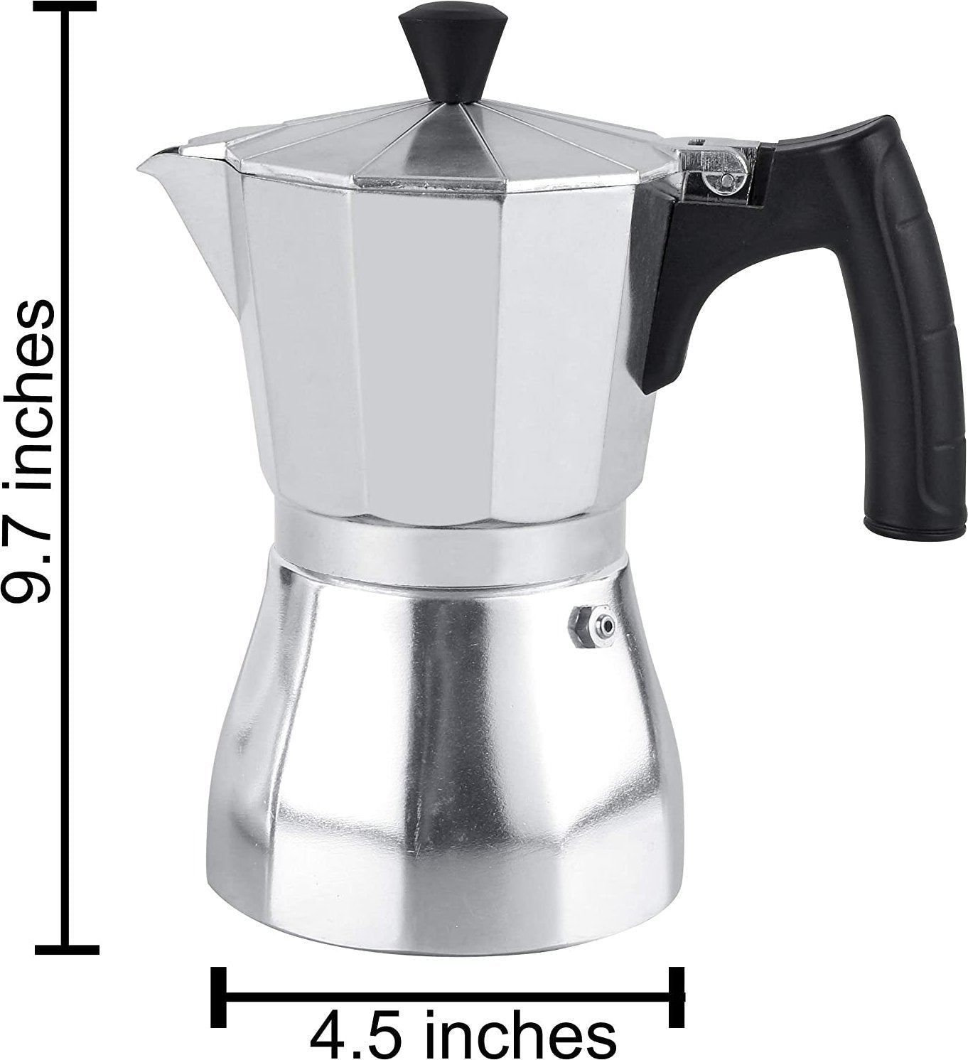 With the invention of the stovetop espresso coffee maker, espresso long a staple of Italian cafés and bars became available for home consumption. As the cold water in the lower chamber heats, the pressure from its boiling forces the water up through the coffee grounds. In just a few minutes, espresso emerges from the spout into the upper chamber as the pot hisses and gurgles. Remove the pot from the heat and let it stand until the lower chamber is releasing only steam. The lower water tank holds a metal filter and features a safety valve. The upper tank fills with perfectly brewed coffee. Now Italy's favorite aluminum coffeemaker can go to work in your kitchen, making delicious espresso on gas or electric stovetops.