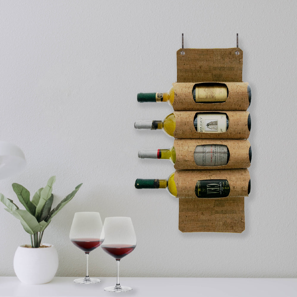 the Cuisivin Corky 4 Wine Bottles Hanging Display—a sophisticated and practical solution for showcasing your wine collection with elegance. Crafted from authentic Portuguese cork textile, this hanging display combines functionality with timeless style, adding a touch of sophistication to any space. The use of real Portuguese cork lends the display a sense of authenticity and natural beauty. Each panel is meticulously crafted to highlight the unique texture and warmth of cork, creating a visually stunning backdrop for your wine bottles. This natural material not only enhances the aesthetic appeal but also reflects a commitment to sustainability and eco-conscious living.