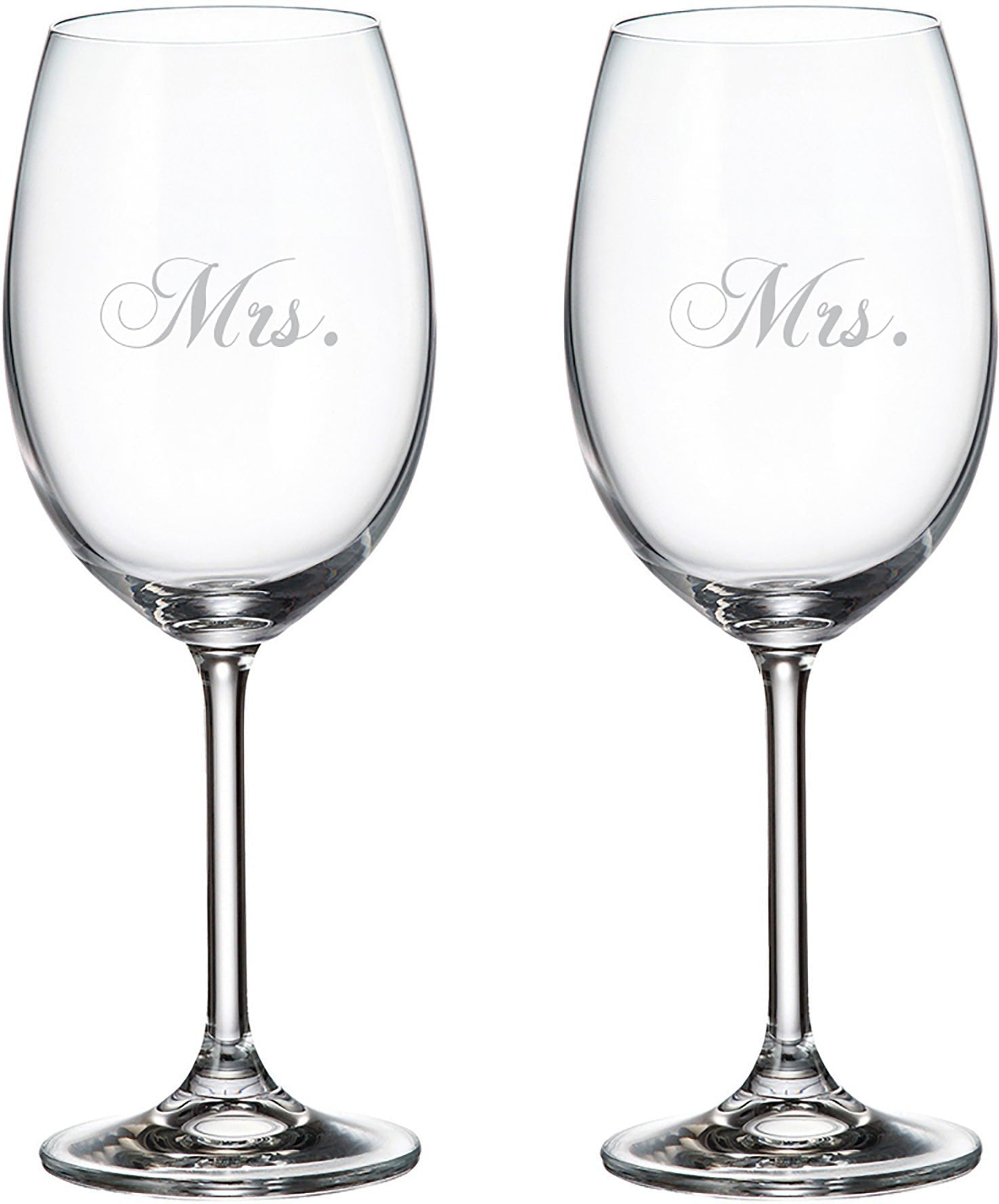 The Cuisivin Mrs. & Mrs. Red Wine Glasses - a delightful addition to any wine enthusiast's collection. This set of 2 exquisite glasses is adorned with charming frost printed designs, adding a touch of elegance to your wine-drinking experience. Crafted from lead-free crystal, these glasses ensure both safety and clarity in every sip. The fine rim enhances the tasting experience, allowing the wine to flow smoothly onto your palate, enriching its flavors.
