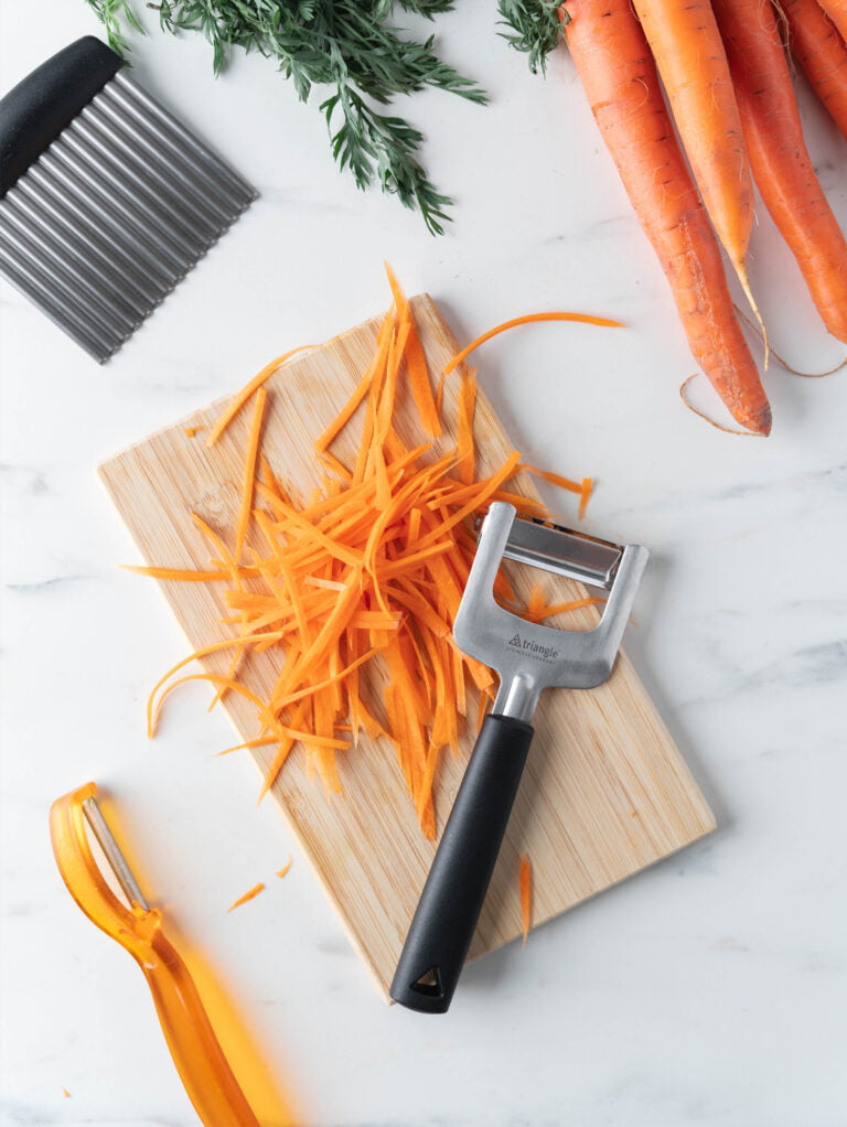 The Triangle Green Grip 3 mm Julienne Cutter is designed to create perfect julienne strips and vegetable spaghetti with ease. Ideal for firm vegetables such as zucchini, carrots, daikon, potatoes, and cucumbers, this tool works as effortlessly as a peeler—simply glide it along the vegetable for clean, consistent cuts. Its durable, hardened stainless steel blade stays sharp over time, ensuring long-lasting performance. Whether you're preparing garnish, stir-fries, soups, or healthy vegetable noodles, this cutter delivers professional results with every stroke. Dishwasher-safe and built for everyday use, it’s an essential addition to any kitchen.