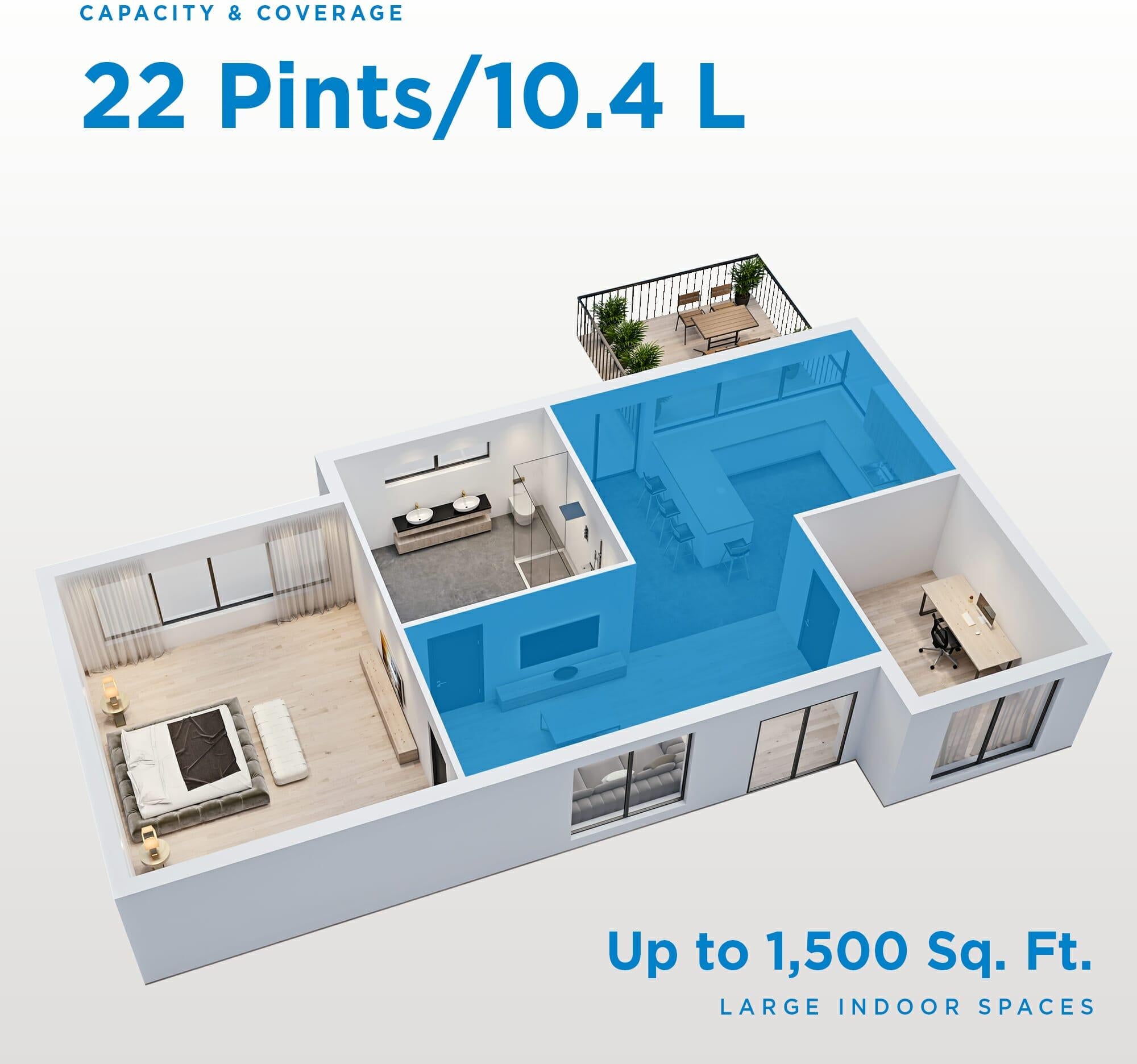 - 50 Pint (23.6 L) Moisture Removal: Ideal for areas up to 3,000 sq. ft.