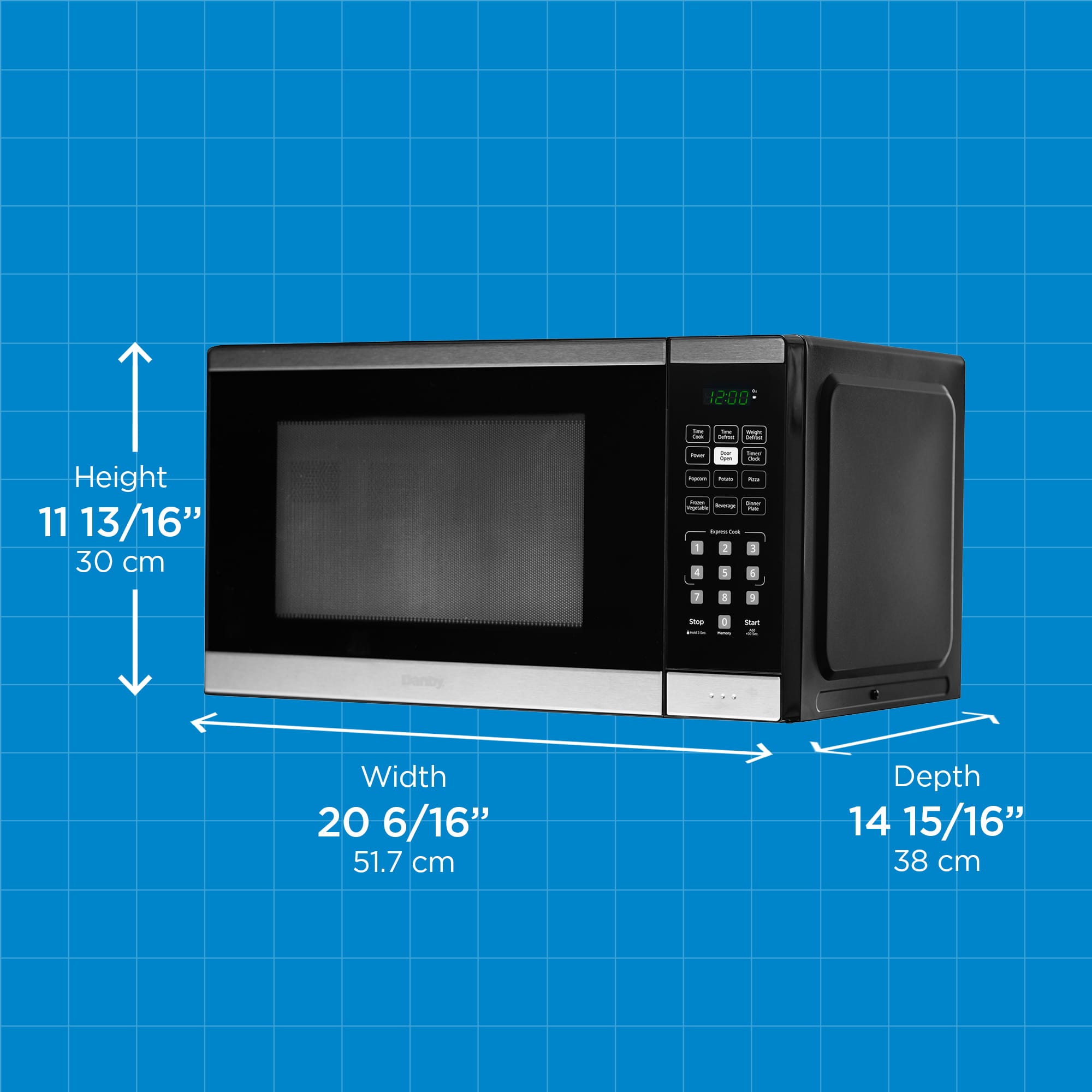 Upgrade your kitchen with the Danby 1.1 cu.ft. Countertop Microwave in a sleek Black and Stainless Steel finish. Designed for convenience and performance, this microwave offers 900 watts of cooking power and 10 power levels to handle a variety of meals. With 6 Auto Cook options—Popcorn, Potato, Pizza, Frozen Vegetables, Beverage, and Dinner Plate—you can quickly prepare your favorites with the push of a button. Express Cook buttons (1 to 6 minutes) and the Add 30 Seconds feature make fast heating even easier. Additional features like Auto Defrost by time or weight, Time Cook, and built-in safety functions ensure precise and secure cooking. With a 12-month parts and labor warranty and modern styling, this microwave is an ideal addition to any home.