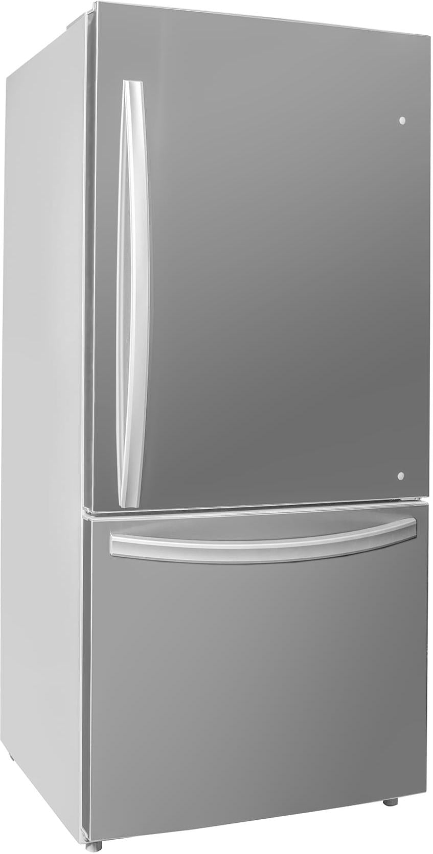 Upgrade your kitchen with the modern functionality of the Danby Designer 18.7 cu.ft. Bottom Mount Refrigerator, perfect for apartments, condos, and homes with limited space. With ENERGY STAR® certification, this fridge delivers efficient performance while keeping your energy bills low. The frost-free fan-forced cooling system ensures consistent temperatures, while the digital thermostat provides effortless control. Inside, you’ll find flexible storage with two adjustable glass shelves, four door bins, and a see-through crisper drawer for fresh produce. The bottom-mounted freezer offers additional organization with a pull-out drawer, wire shelf, and two-door bins. Bright dual LED lighting, a reversible door, and a sleek stainless steel finish make this appliance both functional and stylish.
