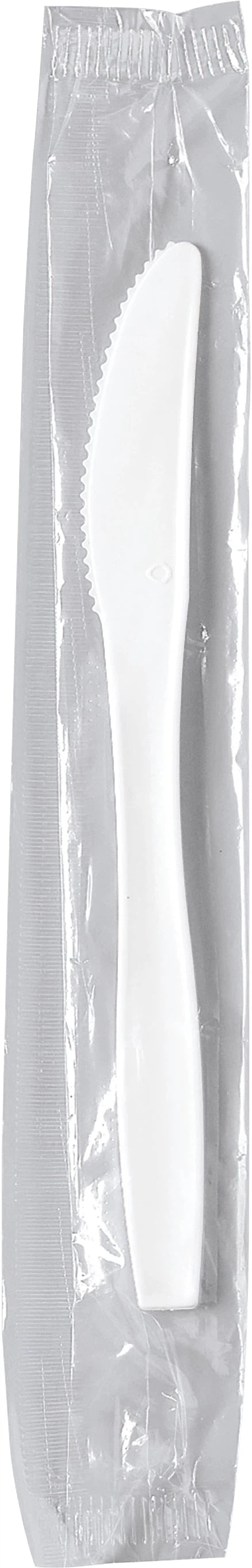 Regal Medium Weight Polypropylene Cutlery Kits. With an abundance of options, Regal cutlery kits are the low cost, dependable, everywhere, everyday cutlery. This line's medium weight and standard length size is perfect for takeout dishes and quick service dining. Dart Container's Regal White Medium Weight Polypropylene Cutlery Knives, a practical and reliable choice for your dining needs. This case includes 1000 knives, each meticulously designed to provide durability and convenience in various settings. Manufactured by Dart Container, a trusted leader in foodservice packaging, these knives are made from medium-weight polypropylene. The classic white color offers a clean and versatile appearance, making them suitable for a range of occasions, from casual dining to events and gatherings. Designed with functionality in mind, these knives provide a sturdy and efficient cutting experience. Whether you're serving main courses, cutting through meats, or offering utensils for takeout orders, the medium-weight construction strikes a balance between strength and flexibility, ensuring reliable performance without sacrificing quality.