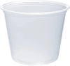 The Dart Container - Conex Compliments Translucent 4 Oz Clear Plastic Portion Cups, available in a case of 2500 (400PC), are versatile and reliable food service containers designed by the reputable brand DART. These portion cups are an essential solution for various applications, offering a capacity of 4 ounce. Constructed from durable polypropylene material, these cups are designed to be medium-weight, striking a balance between sturdiness and flexibility. The clear color of the cups provides excellent visibility, allowing for easy identification of contents, which is particularly beneficial in food service environments. The cups are uncoated and unlined, ensuring that the original taste and quality of the contents remain uncompromised.