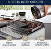 - The built-in conical burr grinder has 13 settings that deliver freshly ground beans every time, allowing you to create over 50 recipes, hot, cold, or to-go, at the touch of a button.