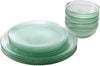 Elevate your dining experience with the Fortessa Jupiter 12 Pc Sage Dinnerware Set, inspired by the charm of Parisian flea markets and featuring the beloved hobnail (bubble) glass design. This collection showcases fun, modern shapes combined with delicate beaded detailing, creating a timeless elegance that brings sophistication and color to any table setting. Crafted from durable Fortessa Glass made of soda-lime-silica with magnesium oxide and alumina, this set offers both style and longevity. Its vibrant sage hue adds a fresh pop of color, making it perfect for daily use or special occasions. The dishwasher-safe design ensures easy cleaning, while the robust construction delivers dependable performance for home or event use. Whether serving cocktails, water, juice, or other beverages, the Jupiter collection is ideal for cocktail enthusiasts and those who want to impress guests with colorful, textured glassware.