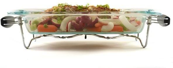 Trivet expands and contracts to fit dishes, pots and pans in a variety of sizes and styles. Use this trivet to bring hot or cold dishes right to the dinner table and protect surfaces from the damage of hot and cold dishes. Heat resistant stay cool handles. Handwashing recommended.