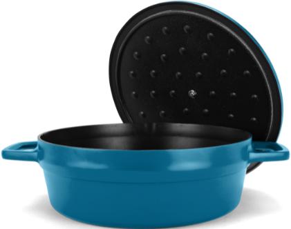 - Includes a lid with basting dimples for moisture retention