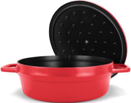 - Includes a lid with basting dimples for moisture retention