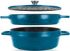 - Replaces seven common cookware pieces—use as a Dutch oven, roaster, casserole, sauté pan, stock pot, bread oven, or double boiler