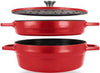 - Replaces seven common cookware pieces—use as a Dutch oven, roaster, casserole, sauté pan, stock pot, bread oven, or double boiler
